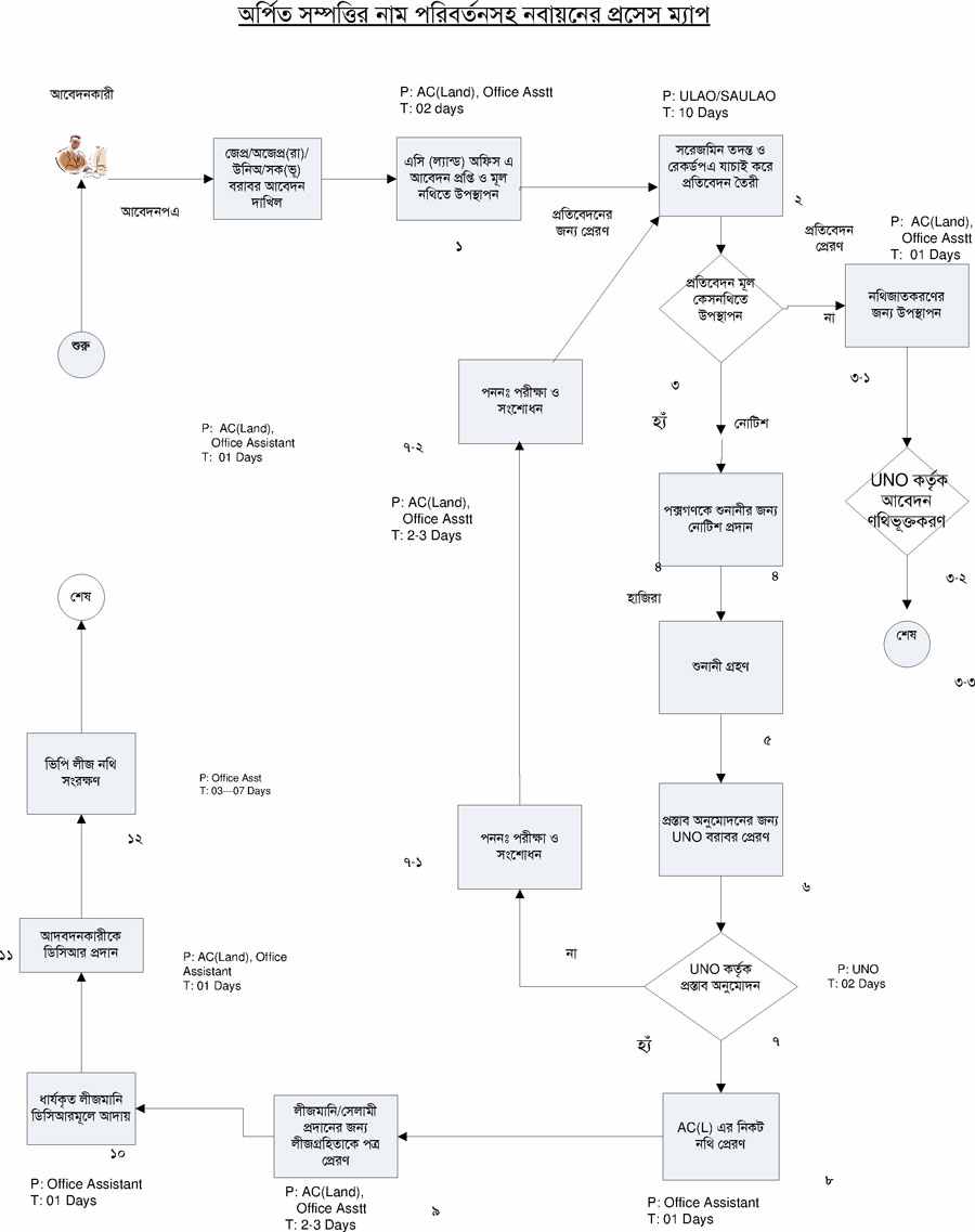 অর্পিত সম্পত্তির নাম পরিবর্তনসহ নবায়নের প্রসেস ম্যাপ
